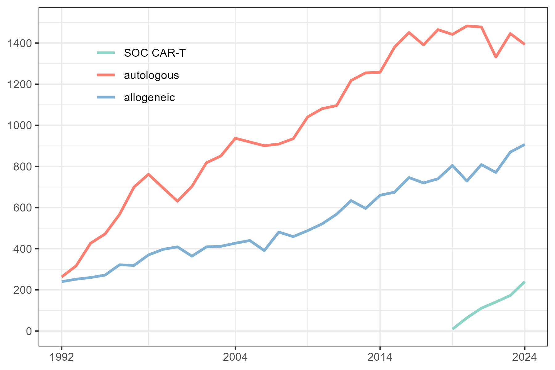 Formerly the ABMTRR ANZTCT Registry The ANZTCT Registry The registry was established in 1992 and was previously known as the ABMTRR (Australasian Bone Marrow Transplant Recipient Registry). It was rebranded in its 30th anniversary year to better reflect its operation under the auspices of Australia and New Zealand Transplant and Cellular Therapies (ANZTCT), previously the Bone Marrow Transplant Society of Australia and New Zealand. The registry records details of bone marrow, peripheral blood and cord blood stem cell transplants and other cellular therapies including CAR-T throughout Australia and New Zealand. The registry is a Commonwealth-funded Clinical Quality Registry. Clinical data Our Annual Data Summary reports on transplant activity, trends and outcomes for autologous and allogeneic transplants performed in Australia and New Zealand. Registry data supports monitoring of outcomes, best clinical practice and the development of guidelines. The TGA and MSAC recommended data collection and reporting by ANZTCT Registry as a condition of approval of commercial CAR-T products. The registry also has the facility to collect these data for other cellular therapy products in both the standard treatment and clinical trial settings. ANZTCT Registry – Autologous and allogeneic transplants + standard of care CAR-T Accrual Data Quality and Benchmarking The registry provides data to hospitals for internal quality programs and to assist with accreditation requirements for stem cell transplant and cell therapy services. Accrediting bodies such as FACT and JACIE require benchmarking against national and international standards. ANZTCT Registry is the only source of this analysis for Australia and New Zealand, and now provides hospital reports for all contributing centres. Research Support ANZTCT Registry data are regularly used for scene setting and feasibility to help plan research projects. Retrospective reviews and analyses of registry data are presented at local and international conferences and may lead to publications in peer reviewed journals. Prospective studies are also supported by the registry. Transplant and Cellular Therapies Services Planning With close to full enumeration of these complex procedures, ANZTCT Registry can provide data to help prioritise resource allocation for these services, such as staffing, laboratory equipment, short term patient care requirements and services for long term survivors.