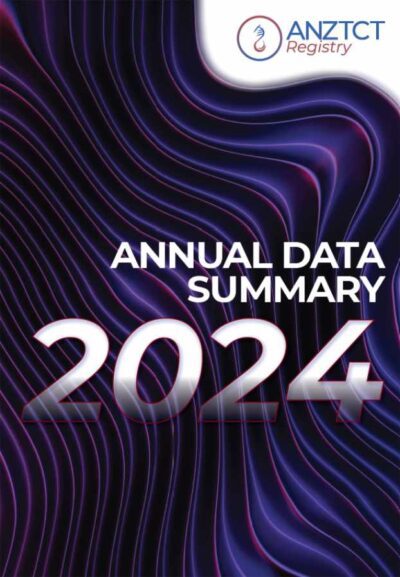 Formerly the ABMTRR ANZTCT Registry The ANZTCT Registry The registry was established in 1992 and was previously known as the ABMTRR (Australasian Bone Marrow Transplant Recipient Registry). It was rebranded in its 30th anniversary year to better reflect its operation under the auspices of Australia and New Zealand Transplant and Cellular Therapies (ANZTCT), previously the Bone Marrow Transplant Society of Australia and New Zealand. The registry records details of bone marrow, peripheral blood and cord blood stem cell transplants and other cellular therapies including CAR-T throughout Australia and New Zealand. The registry is a Commonwealth-funded Clinical Quality Registry. Clinical data Our Annual Data Summary reports on transplant activity, trends and outcomes for autologous and allogeneic transplants performed in Australia and New Zealand. Registry data supports monitoring of outcomes, best clinical practice and the development of guidelines. The TGA and MSAC recommended data collection and reporting by ANZTCT Registry as a condition of approval of commercial CAR-T products. The registry also has the facility to collect these data for other cellular therapy products in both the standard treatment and clinical trial settings. ANZTCT Registry – Autologous and allogeneic transplants + standard of care CAR-T Accrual Data Quality and Benchmarking The registry provides data to hospitals for internal quality programs and to assist with accreditation requirements for stem cell transplant and cell therapy services. Accrediting bodies such as FACT and JACIE require benchmarking against national and international standards. ANZTCT Registry is the only source of this analysis for Australia and New Zealand, and now provides hospital reports for all contributing centres. Research Support ANZTCT Registry data are regularly used for scene setting and feasibility to help plan research projects. Retrospective reviews and analyses of registry data are presented at local and international conferences and may lead to publications in peer reviewed journals. Prospective studies are also supported by the registry. Transplant and Cellular Therapies Services Planning With close to full enumeration of these complex procedures, ANZTCT Registry can provide data to help prioritise resource allocation for these services, such as staffing, laboratory equipment, short term patient care requirements and services for long term survivors. 2024 Annual Data Summary Each year, the ANZTCT Registry publishes the ADS, providing insights into transplant activity across Australia and New Zealand, including trends in transplant types, diseases treated, age at transplant, stem cell sources, and survival data.